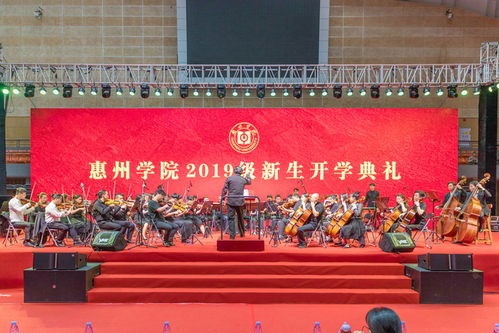 本网讯 加强大学美育教育,提升大学生审美水平,是高校思想政治教育的重要内容。9月11日下午,在新生入学教育系列报告期间,我校在金山湖体育馆举办了一场“爱国歌曲进校园”活动暨新生音乐会。学校交响乐团将一首首爱国歌曲精彩演绎,将爱国情、强国志、报国行融入到新生入学教育当中,激发全场师生的爱国热情,推进学校精神文明建设,共同迎接新中国成立70周年!