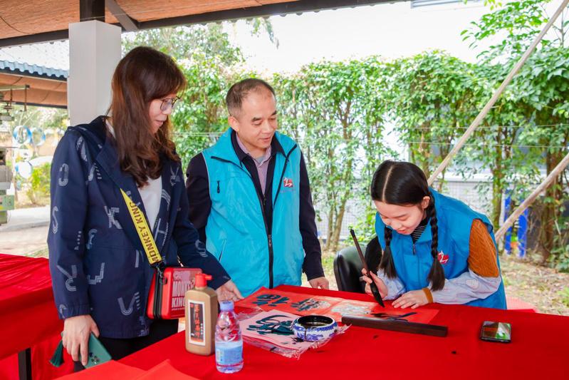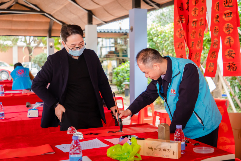 本网讯为进一步深化党史学习教育“我为群众办实事”活动,强化校企合作,1月9日上午,旭日广东服装学院党总支书记、惠州市书法家协会副主席曾裕林带领由学校师生和协会部分成员组成的书法志愿服务队,前往校企合作单位安东尼国际工业园·惠州市大西洋服饰有限公司,为员工免费书写春联,送上新春的问候和祝福。旭日广东服装学院有关负责人及部分教师参加了公益活动。