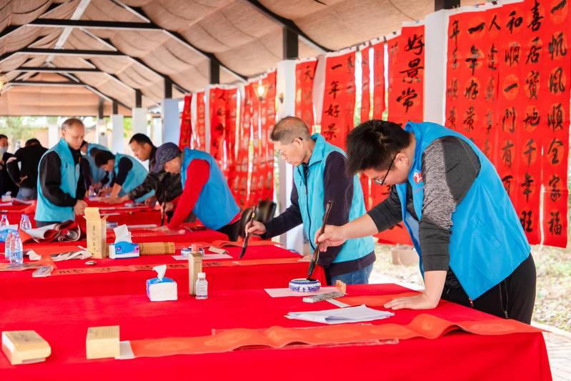 天气虽然寒冷,但活动现场热烈有序。书法志愿者笔走龙蛇、挥毫泼墨,一幅幅充满新春祝福和对美好生活向往的大红春联一挥而就,为工业园区增添了浓厚的年味。本次活动得到了惠州市书法家协会的大力支持,有十余位书法志愿者参加了活动,志愿者中最高龄已过古稀之年,年龄最小的刚满21周岁,老、中、青三代书法爱好者用笔墨书写传承着中华优秀传统文化。